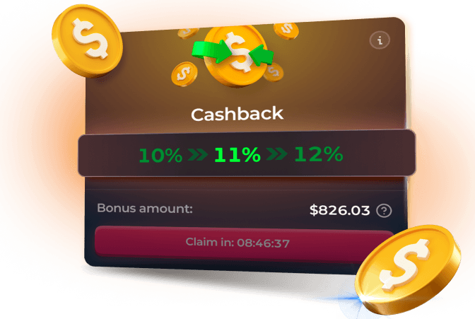 | Cashback | For Rank 1-5 users: 50% on the balance, 50% for 3 days. For Rank 6-10 users: 75% on the balance, 25% for 3 days. For VIPs: 100% on the balance. |